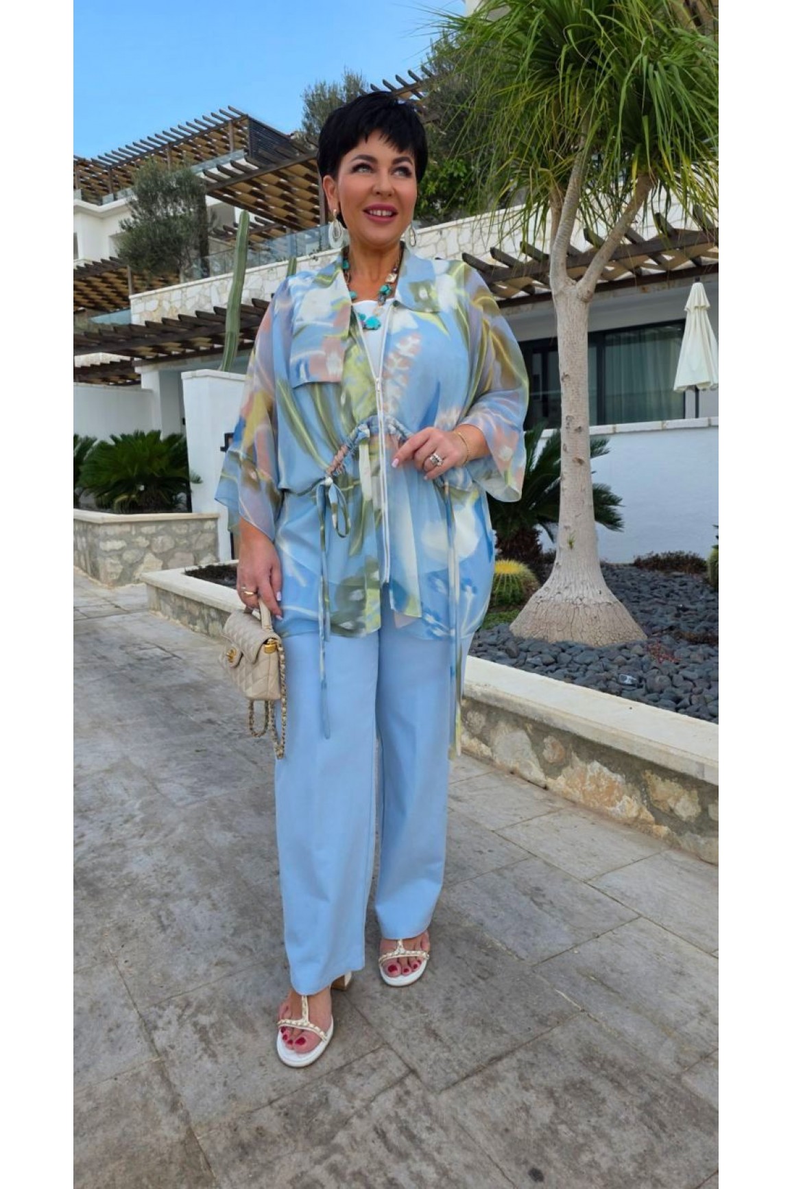 КупитьСостав: 100% хлопок, подкладка 100% хлопок. Женский летний костюм из легкой однотонной ткани в сочет..