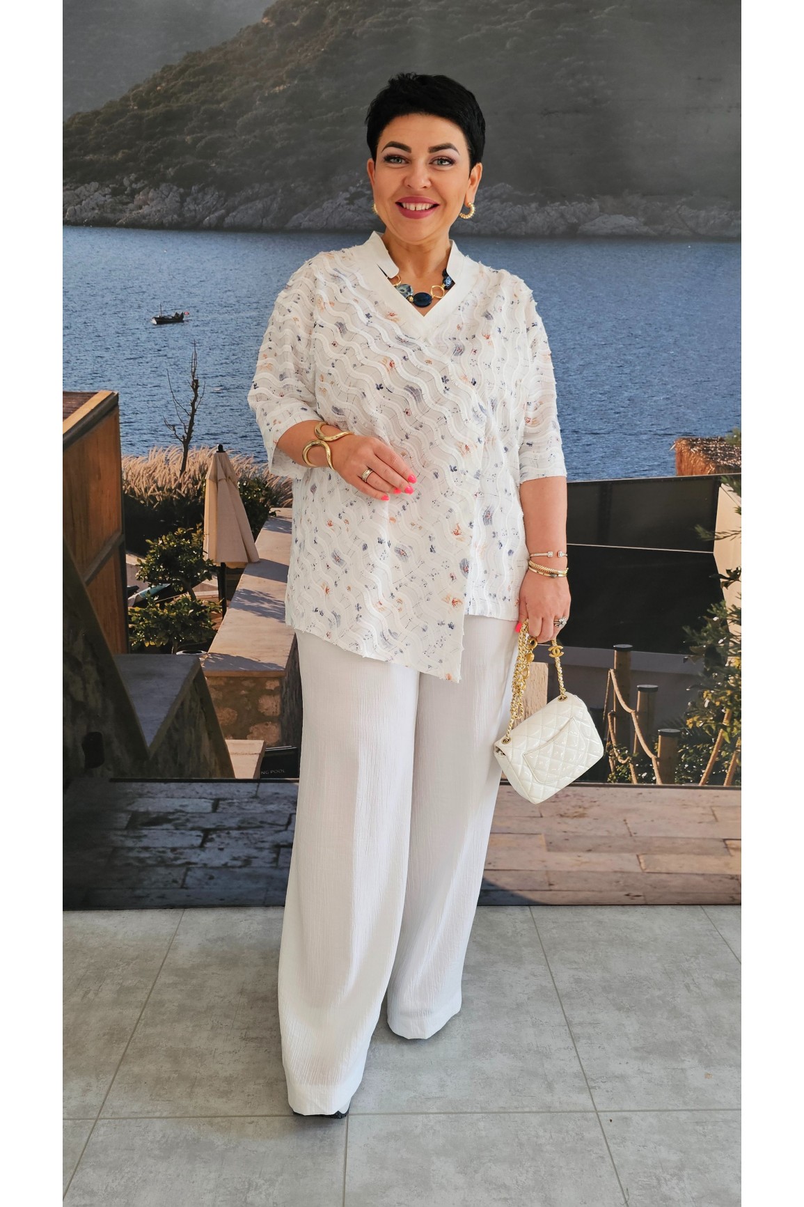 | Размер | ОГ Блузки | Ширина блузки на уровне линии бедер | ширина рукава вверху | ОТ брюк | ширина на уровне среднего шва |