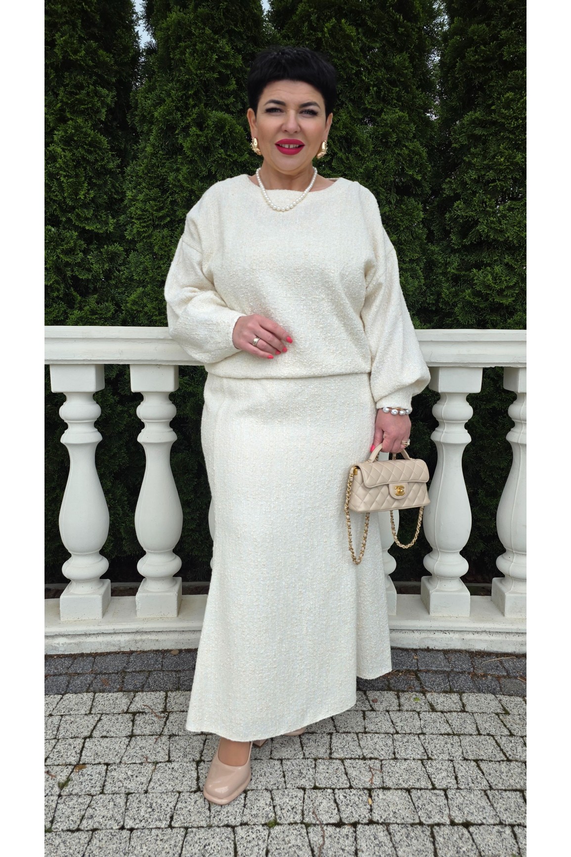 КупитьСостав: 86%вискоза, 14%нейлон. Костюм женский, состоящий из блузы и юбки длины «миди», восхитительно..