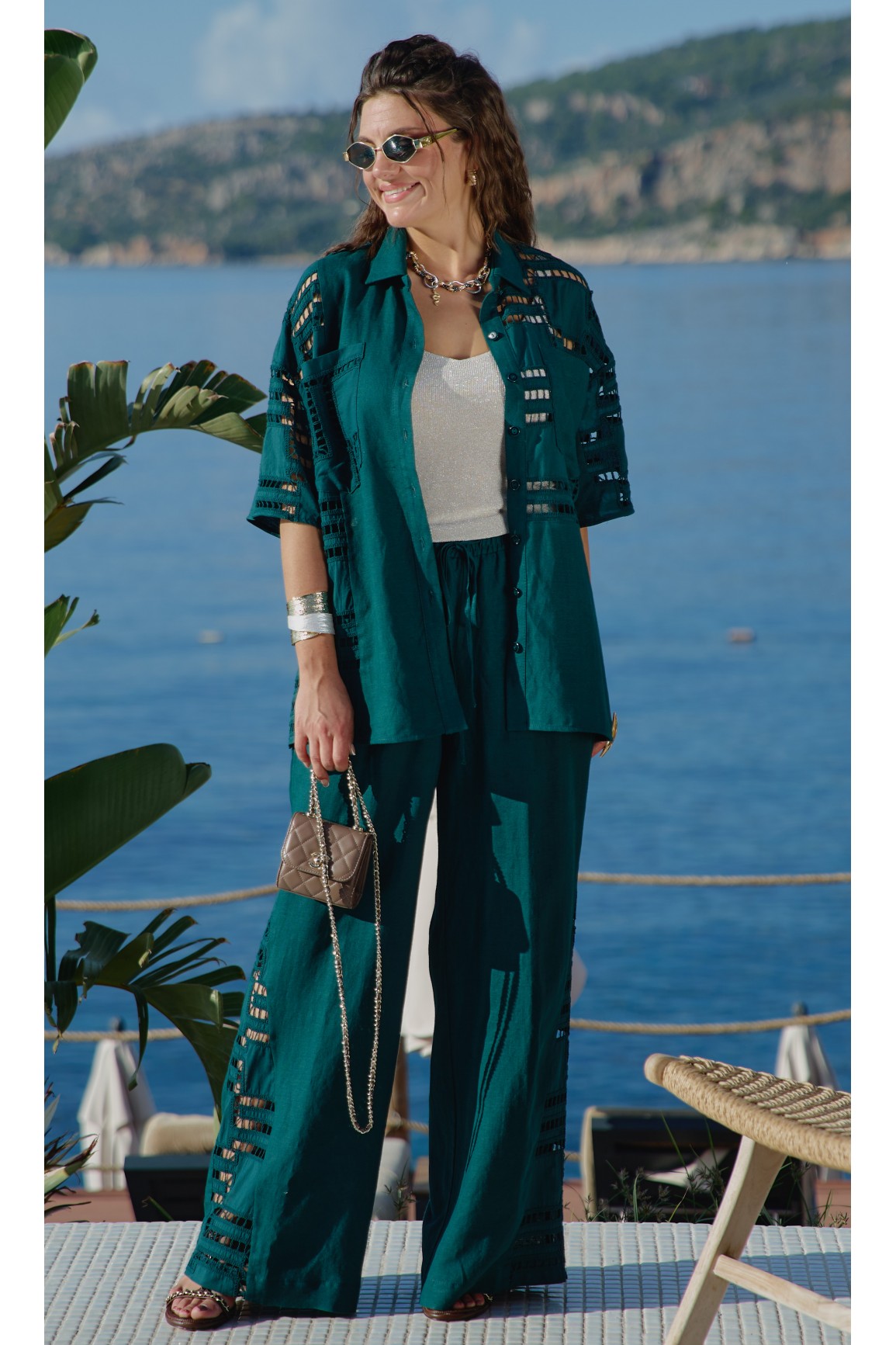 Состав: 97% хлопок, 3% эластан. Брюки молочного оттенка — это про лёгкость решений. Они дарят ощущен..