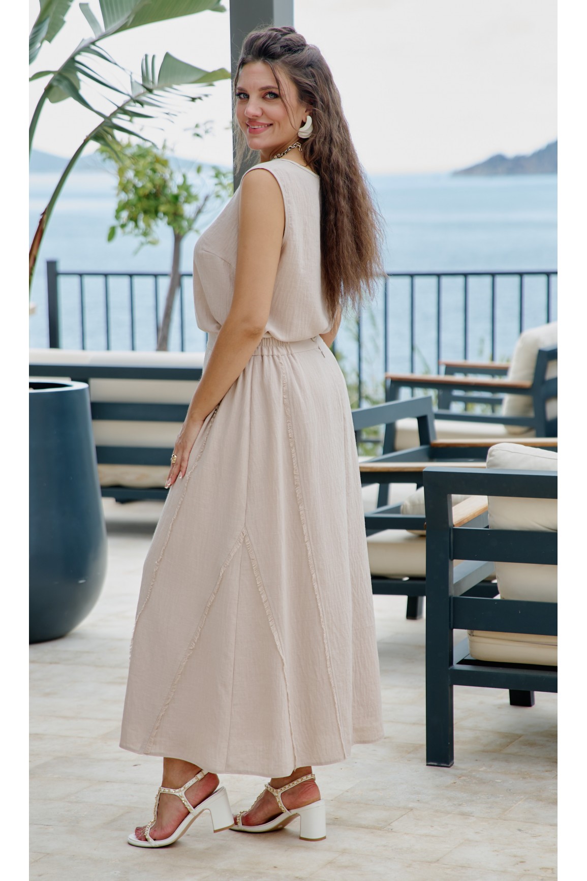 Состав: 100% хлопок, подкладка 100% хлопок. Женский летний костюм из легкой однотонной ткани в сочет..