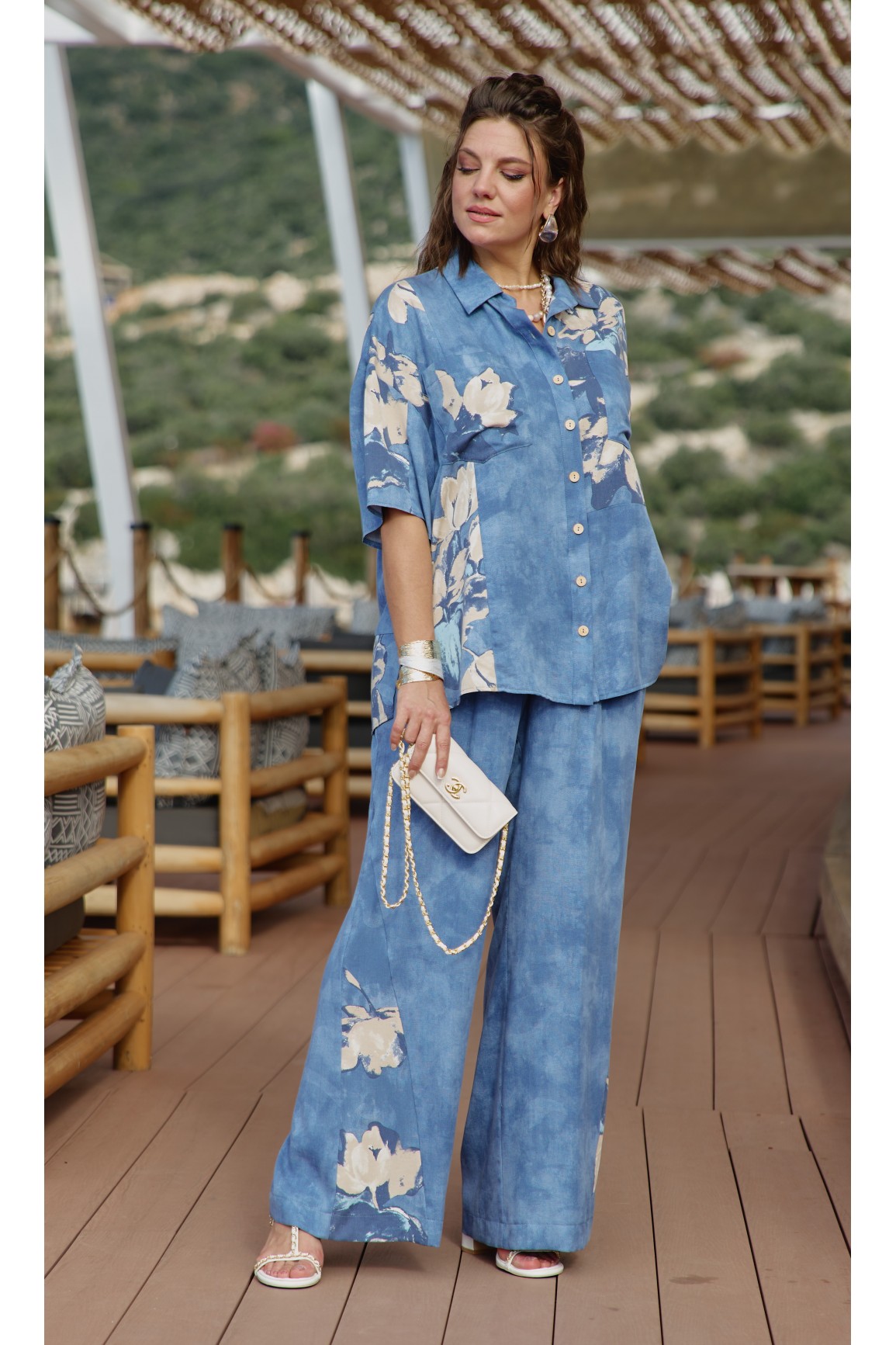 Состав: платье 53% лён, 47% вискоза, блузка 100% хлопок. Комплект женский, состоящий из блузки и пл..