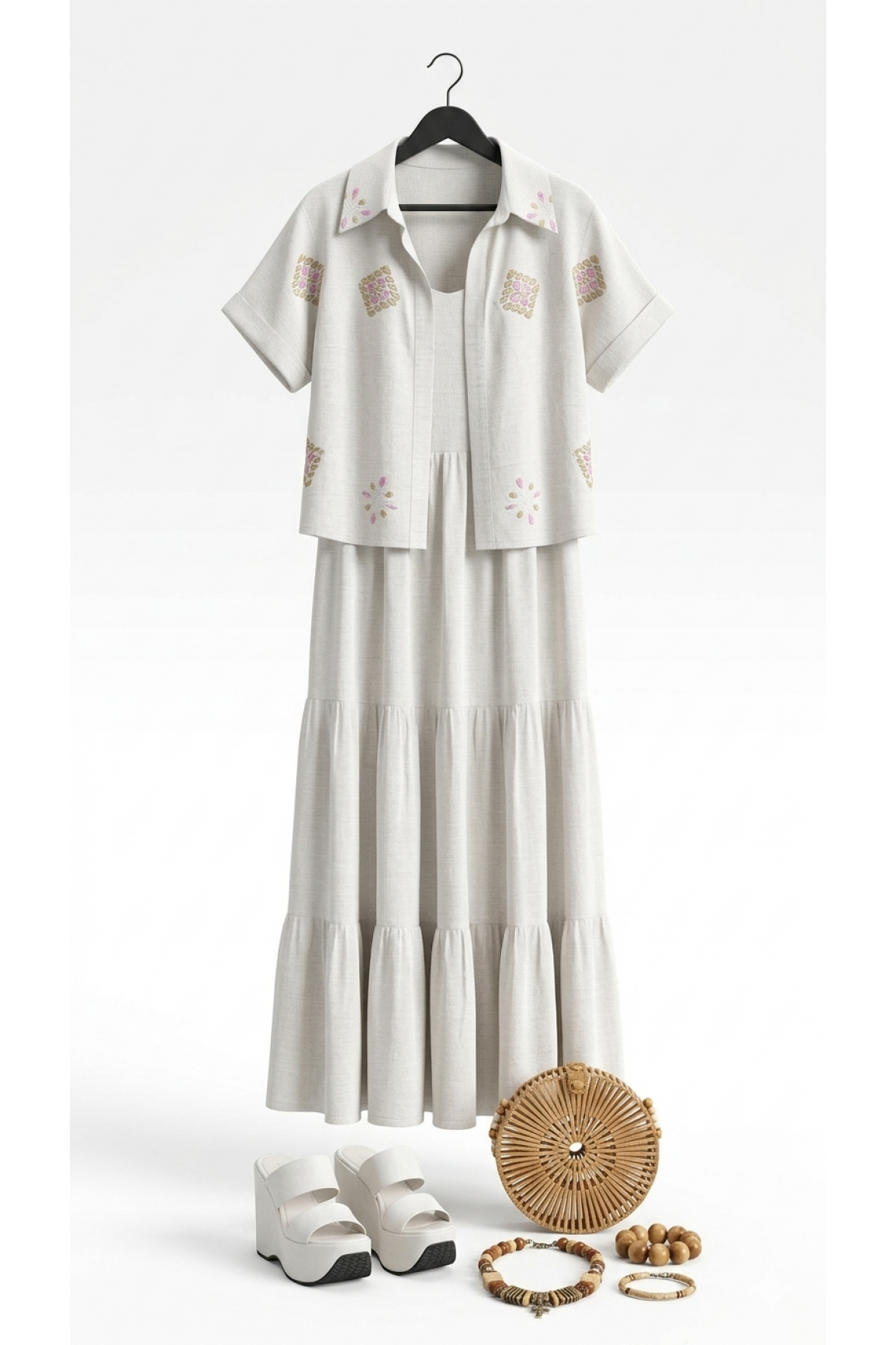 | Состав | блузка 64% вискоза, 19% полиамид, 9% полиэстер, 8% лён, платье 70% вискоза, 21% полиамид, 9% лён |
