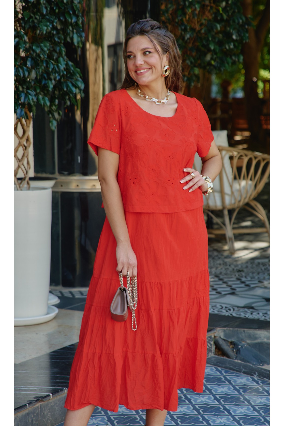 КупитьСостав: 100% хлопок, подкладка 100% хлопок. Очень красивое и яркое платье с вышивкой ришелье на хлоп..