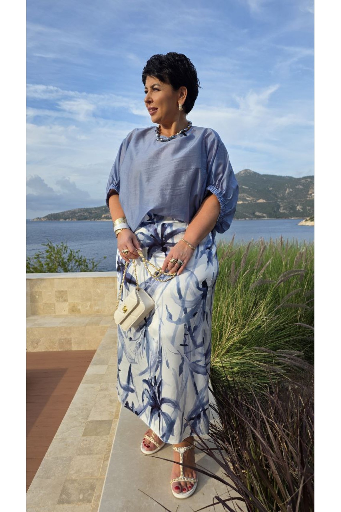 КупитьСостав: 85% тенсел, 15% полиэстер. Блузка словно соткана из светло-серого жемчуга, застывшего в моме..